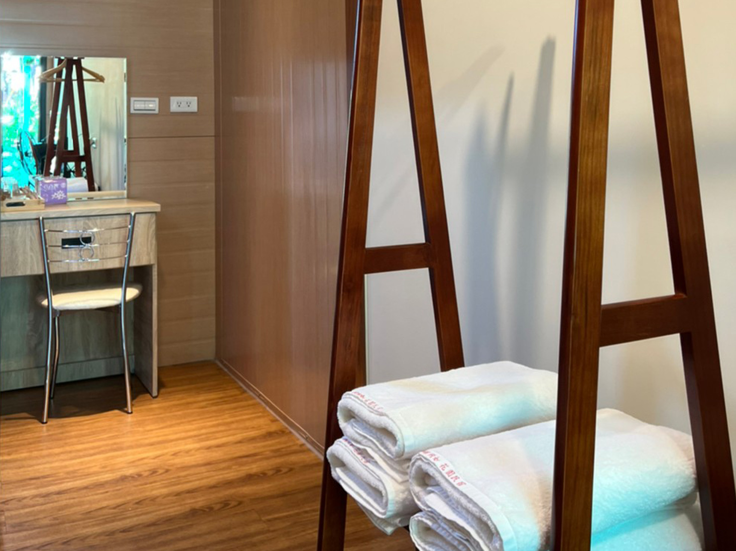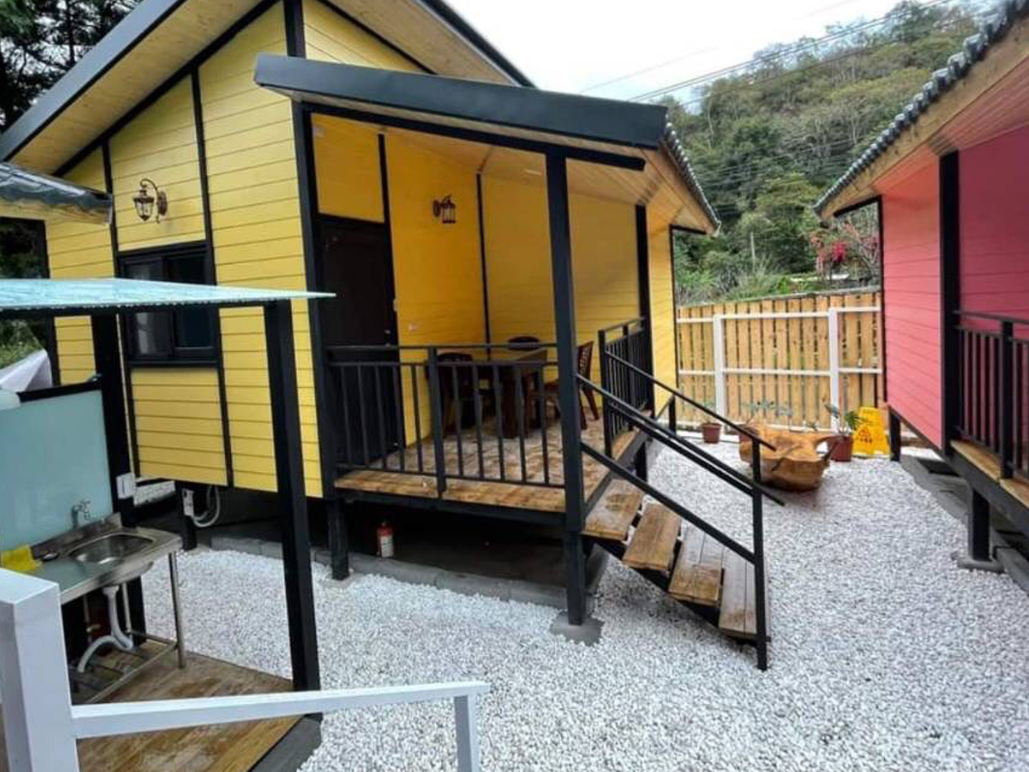 *小木屋內設有冷暖氣機,高級床墊,乾濕分離衛浴盥洗用具,吹風機梳妝台,液晶電視