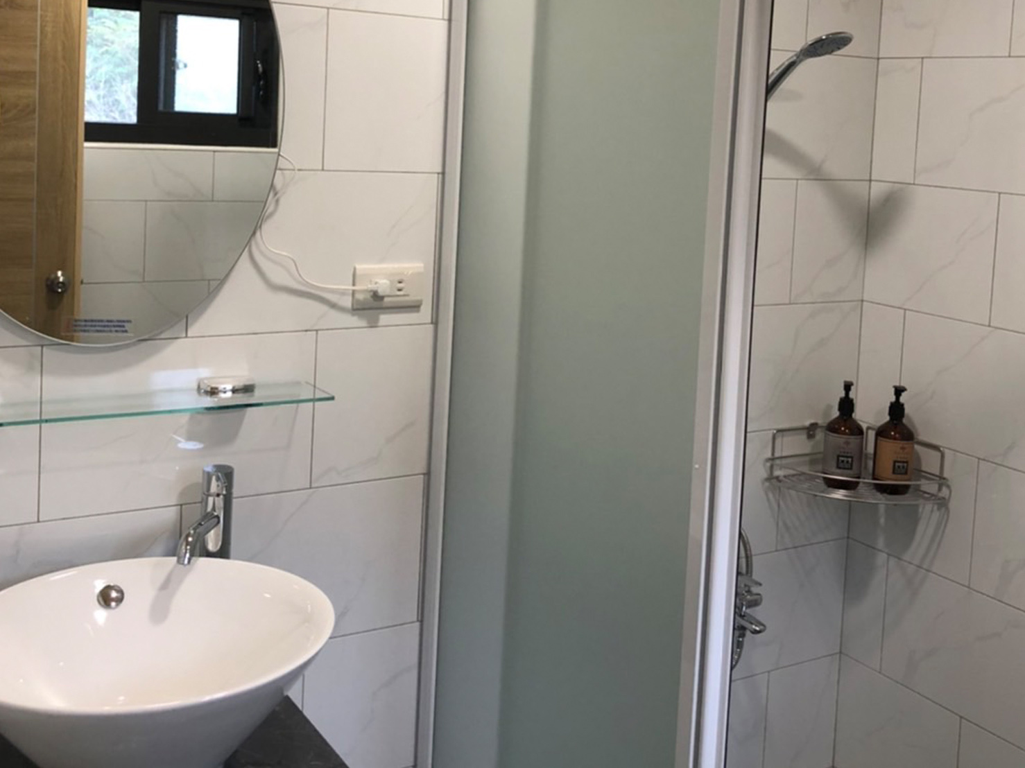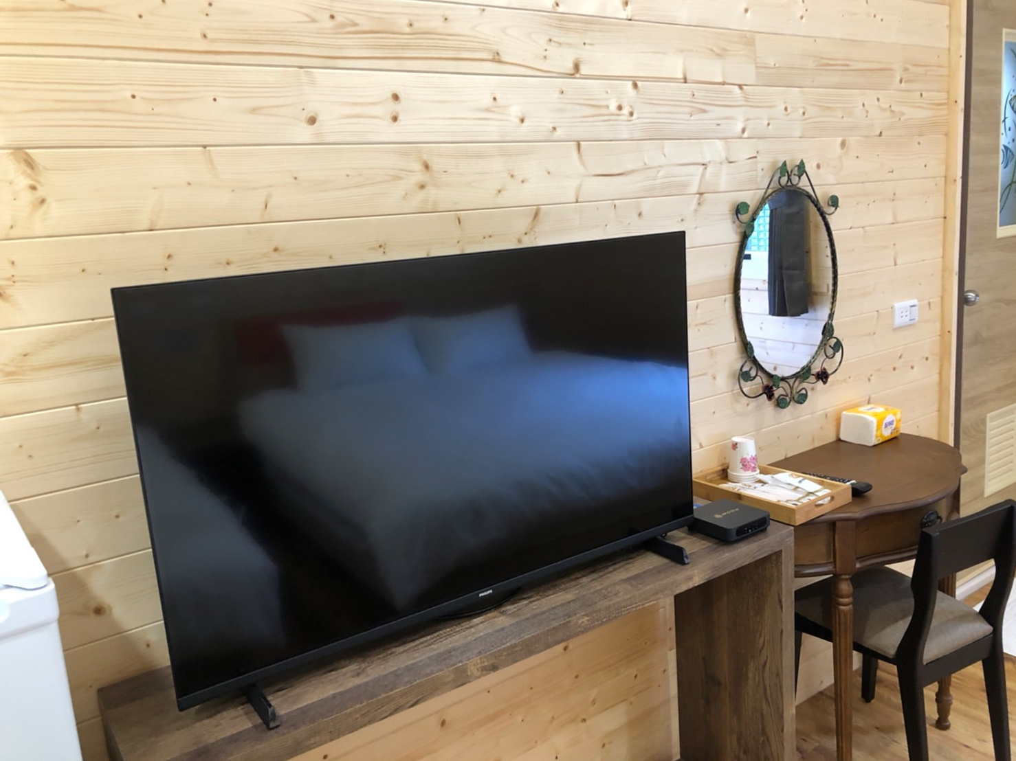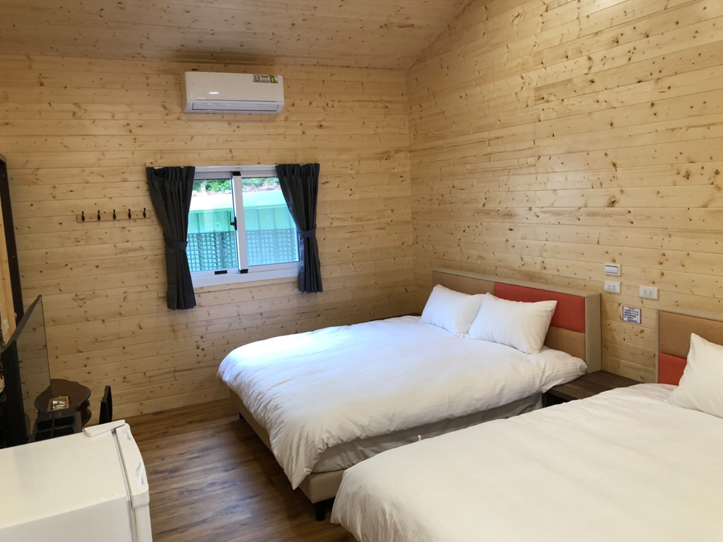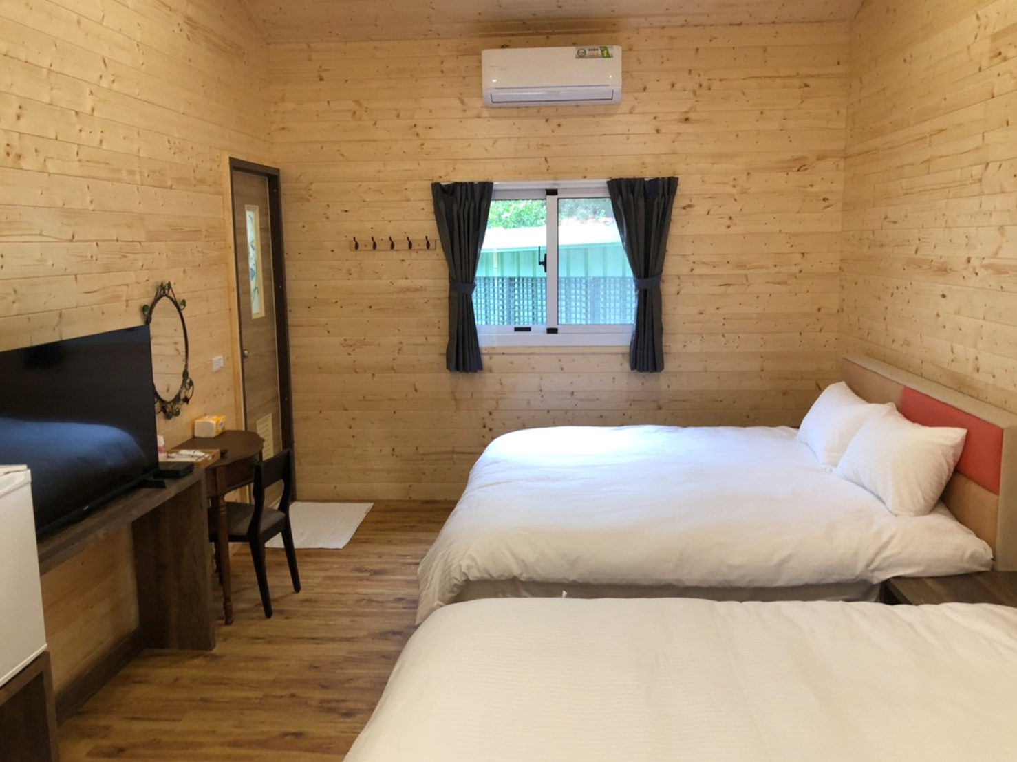 *小木屋內設有冷暖氣機,高級床墊,乾濕分離衛浴盥洗用具,吹風機梳妝台,液晶電視